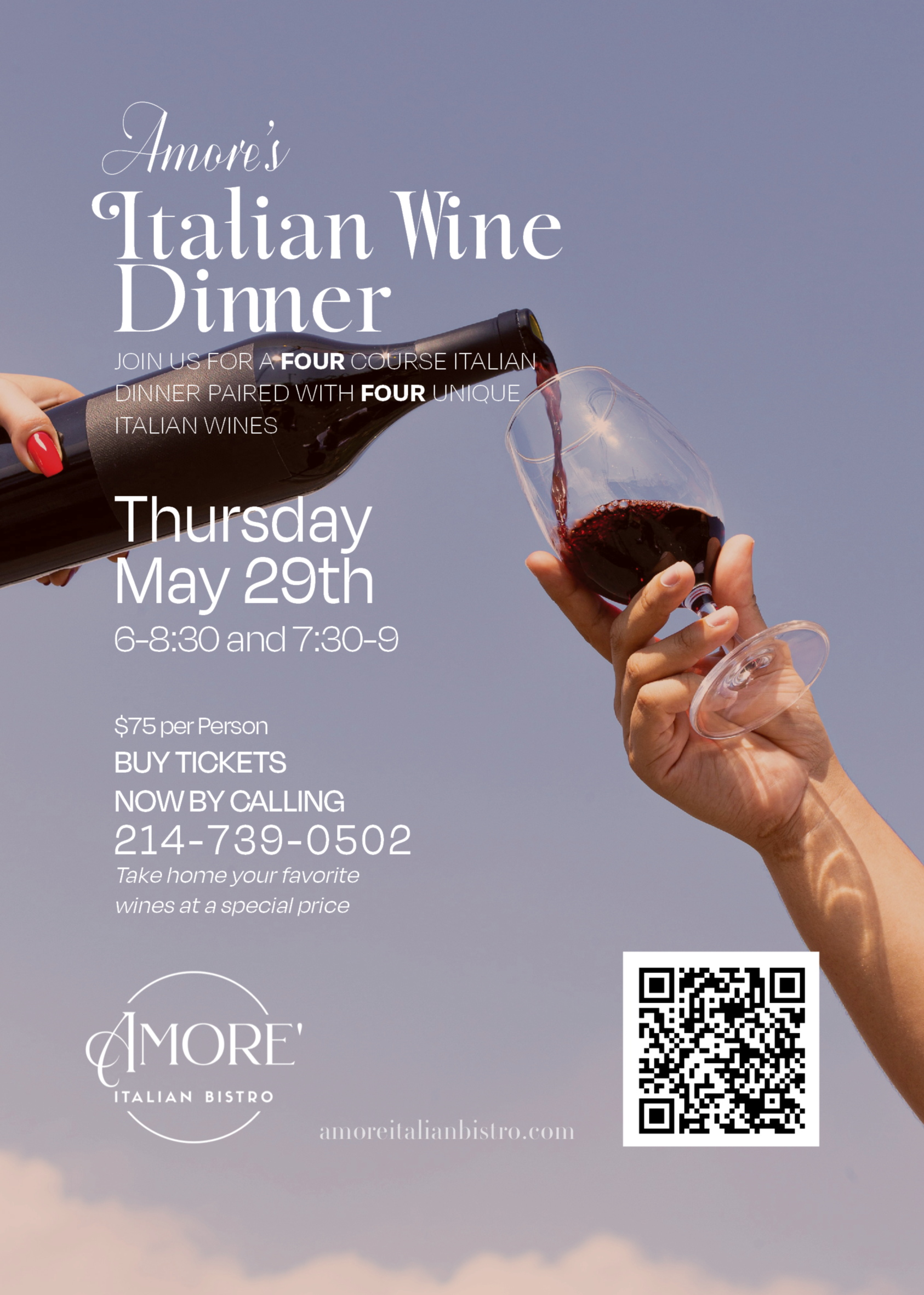OrderA staple of the Park Cities Community, Amore' began with humble beginnings in 1983 with a vision to serve the community with the freshest quality ingredients, satisfying ambiance, and the impeccable customer service expected by the thriving community. We are proud of the traditions and welcoming staff, owned and operated by local small business owners for the last 40 years.